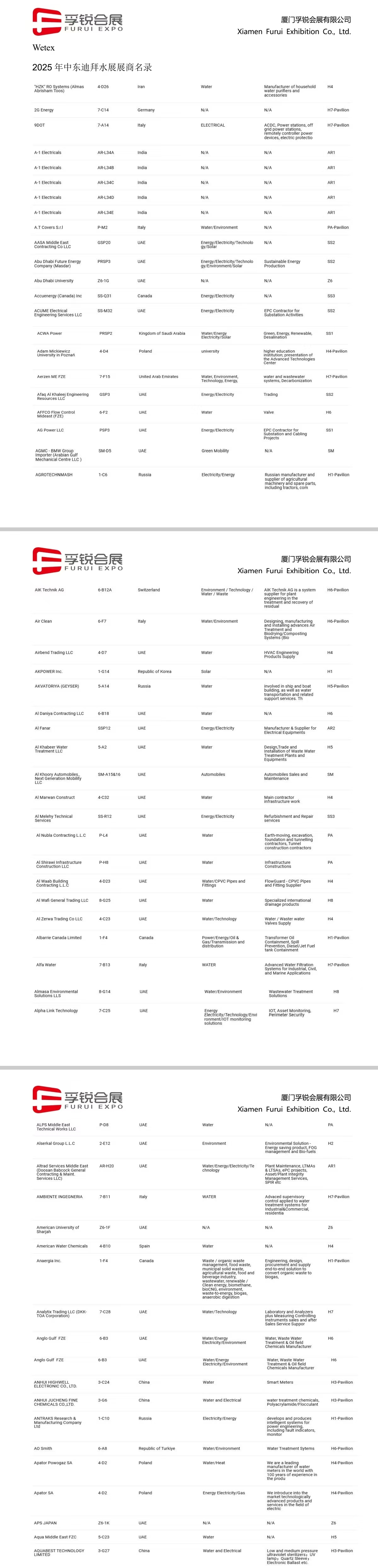 2025年中东迪拜水展展商名录